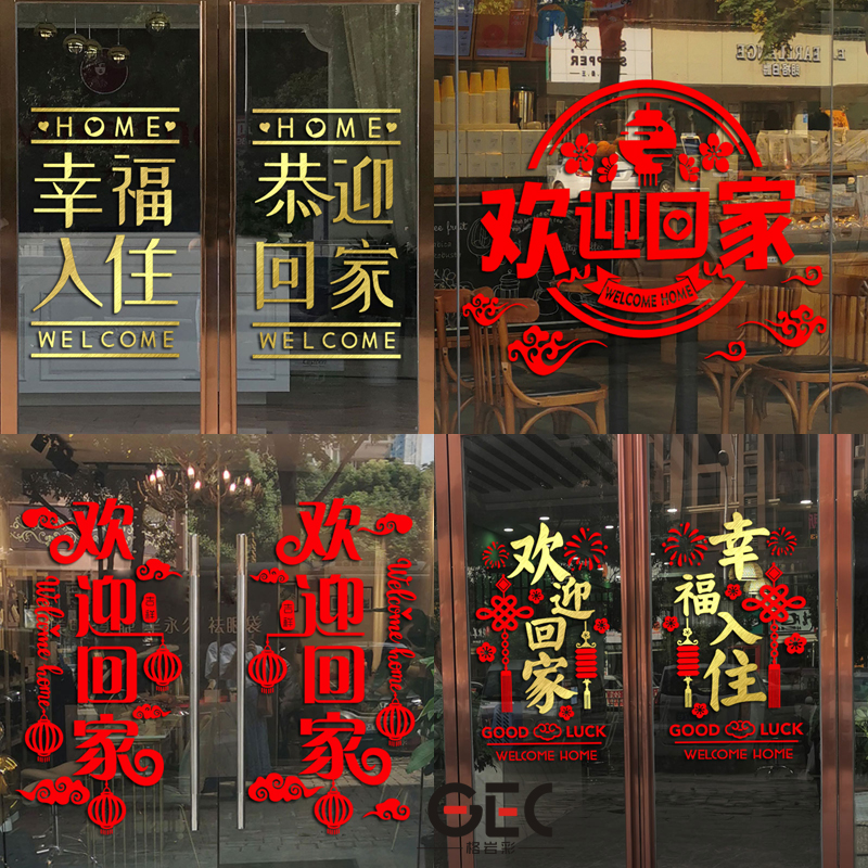 静电欢迎回家墙贴纸物业小区入户大堂电梯售楼部玻璃门场景布置贴热门设计联盟服务商