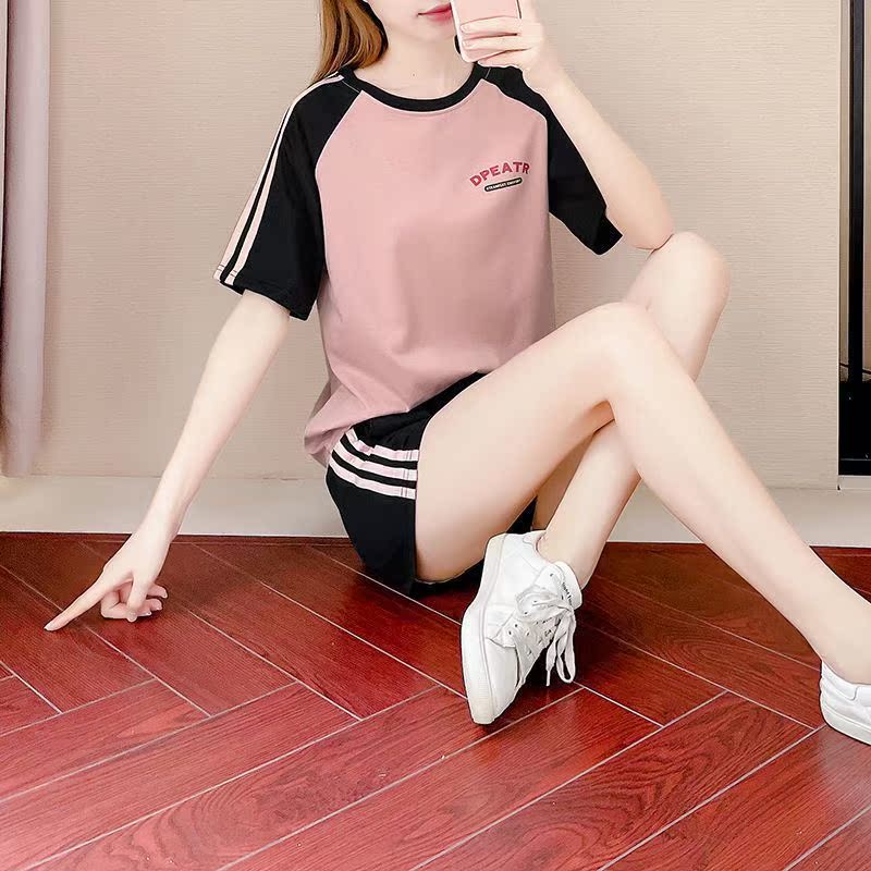 休闲运动服套装女夏季2021新款姐妹装短袖宽松短裤体育考试五分裤热门设计联盟服务商