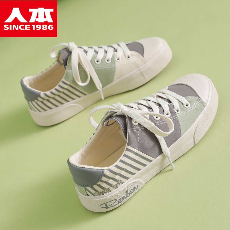 人本经典格纹帆布鞋女韩版款鞋子百搭板鞋2021秋新款学生休闲鞋热门设计联盟服务商