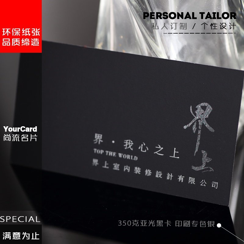 砚黑卡纸双面印银特种工艺高档创意名片设计制作印刷热卖。热门设计联盟服务商