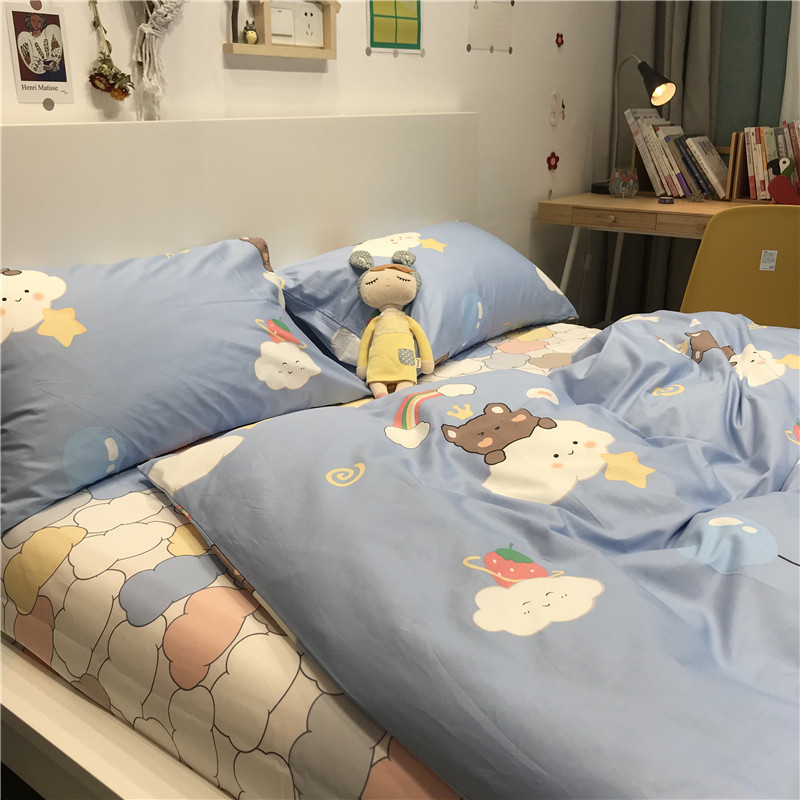 蓝色卡通可爱小熊熊四件套全棉纯棉小清新少女心1.5m被套床单学生热门设计联盟服务商