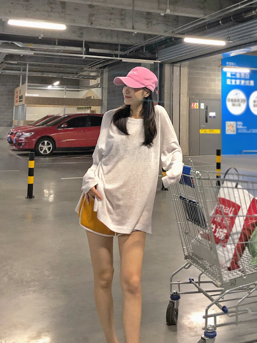 竹节棉大领口T恤女宽松慵懒百搭长款遮PPT恤微透夏薄款设计感小众热门设计联盟服务商