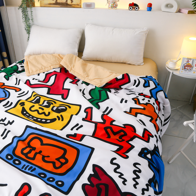创意涂鸦纯棉空调被卡通夏季午休薄被子可机洗1.2m学生宿舍单人。热门设计联盟服务商