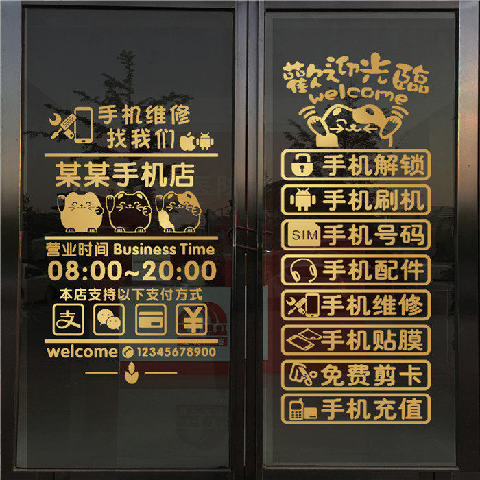 手机维修广告贴纸电脑数码通讯手机店玻璃门定制广告装饰贴画热门设计联盟服务商