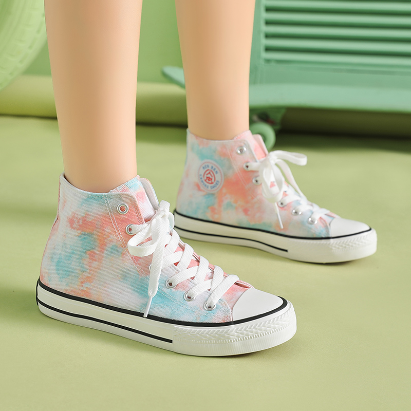 人本2021夏扎染帆布鞋小众原创鞋学生女鞋高帮款ulzzang潮鞋热门设计联盟服务商